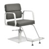 Siedzisko wypełnione miękką pianką zapewnia komfort nawet podczas długich zabiegów, a ergonomicznie wyprofilowane oparcie wspiera plecy. Mechanizm pełnego obrotu zwiększa swobodę ruchów umożliwia swobodny dostęp z każdej strony, usprawniając pracę stylisty. Tapicerowane podłokietniki, osadzone na optymalnej wysokości, wspierają naturalne ułożenie ramion, zmniejszając napięcia barków i karku. Dodatkowym udogodnieniem jest praktyczny uchwyt na ręcznik umieszczony pod lewym podłokietnikiem, ułatwiający organizację pracy.