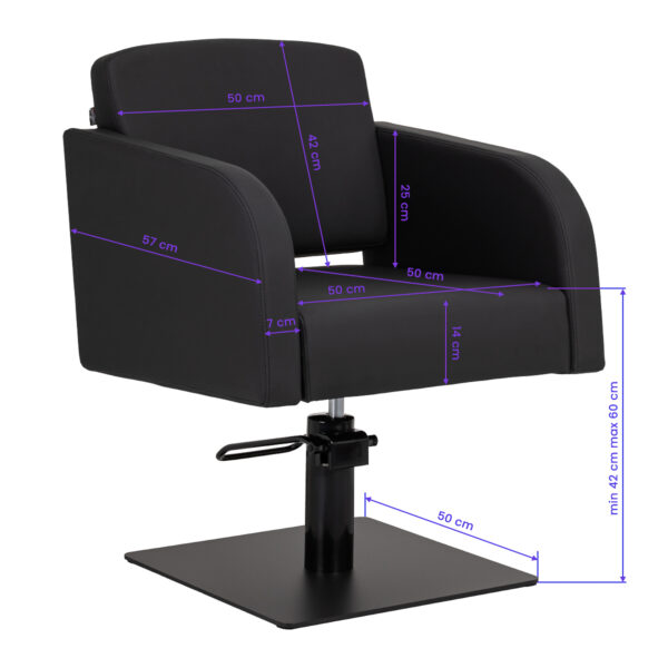 Fotel fryzjerski Gabbiano Elda łączy minimalistyczny design z funkcjonalnością i wygodą codziennego użytkowania. Opływowe linie nadają mu lekkości i nowoczesnego charakteru, a stabilna, kwadratowa podstawa w matowej czerni dodatkowo podkreśla jego styl. Miękkie piankowe wypełnienie w połączeniu z przyjemną w dotyku skórą syntetyczną w odcieniach czerni zapewnia wygodę nawet podczas długich zabiegów. Starannie dobrane materiały gwarantują trwałość, odporność na wilgoć oraz łatwość w utrzymaniu czystości. Fotel doskonale pasuje do nowoczesnych, jak i klasycznych aranżacji, podkreślając profesjonalny charakter salonu.