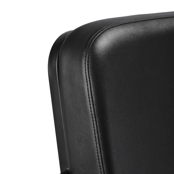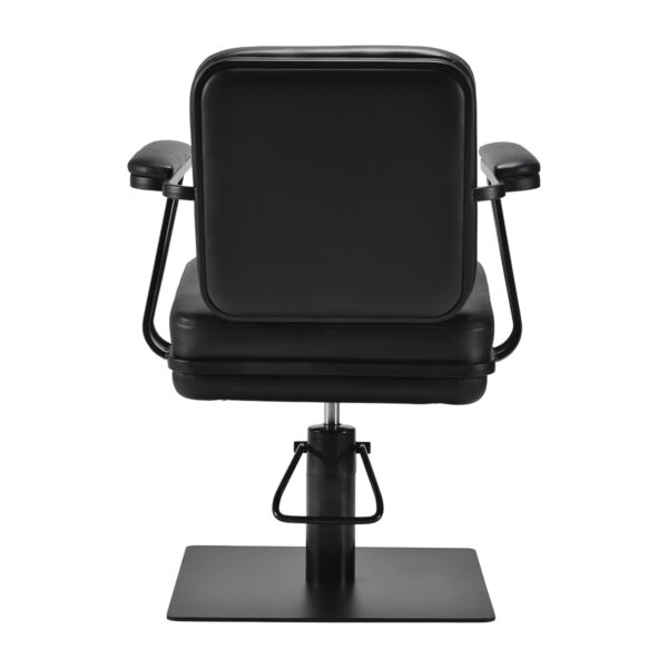 Wyprofilowany fotel zapewnia wsparcie lędźwi i wysoki komfort użytkowania, a tapicerowane podłokietniki umożliwiają prawidłowe ułożenie barków klienta. Stabilna, kwadratowa podstawa w matowej czerni podkreśla stylowy wygląd, a przyjemna w dotyku skóra syntetyczna w odcieniach czerni gwarantuje wygodę podczas długich zabiegów, trwałość, odporność na wilgoć i łatwość czyszczenia. Nowoczesny design nadaje wnętrzu wyjątkowego charakteru, a fotel sprawdza się zarówno w nowoczesnych, jak i klasycznych aranżacjach, podkreślając profesjonalny wizerunek salonu.