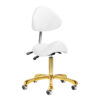 Fotel z otworem w zagłówku, z praktycznymi kuwetami, doskonale sprawdza się w kosmetyce, wizażu i masażu. Posiada wyjmowane podłokietniki i zaślepkę w zagłówku. Poszycie fotela łatwo zmywalne, wykonane z eko-skóry, spełniające rygorystyczne wymogi UE, estetyczne, niklowane elementy metalowe. Na oparciu zamontowany jest pałąk na prześcieradło jednorazowe, serwety lub ręcznik.