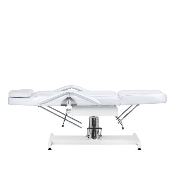 Wysokość fotela można dostosowywać w zakresie 62-75 cm bez użycia rąk za pomocą pompy hydraulicznej. Pozwala to na komfortowe korzystanie ze sprzętu osobom o różnym wzroście i umożliwia dostosowanie go do indywidualnych potrzeb zarówno klienta, jak i osoby wykonującej zabieg. Zastosowany mechanizm jest bardzo trwały i niezawodny. Dzięki otworowi w zagłówku, który jest ukryty pod odpowiednio wyprofilowaną poduszką, fotel doskonale sprawdzi się również przy zabiegach przeprowadzanych na plecach, takich jak masaże.