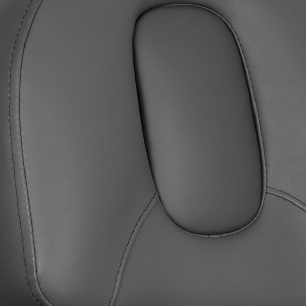 Wygodne ergonomicznie wyprofilowane siedzisko zapewnia wygodne i stabilne ułożenie ciała podczas zabiegów. Konstrukcja umożliwia rozłożenie fotela do pozycji leżanki, a praktyczny otwór w zagłówku, dyskretnie ukryty pod poduszką, sprawia, że doskonale sprawdza się również przy masażach oraz zabiegach na plecy i ciało. Wysuwany zagłówek pozwala dodatkowo dopasować fotel do wzrostu klienta i rodzaju wykonywanego zabiegu. Stabilne podłokietniki zapewniają komfortowe podparcie rąk, a możliwość ich odchylenia do tyłu ułatwia zajmowanie miejsca na fotelu.