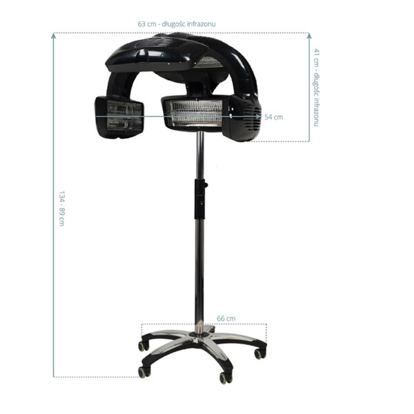 Infrazon jest to urządzenie służące do przyspieszania zabiegów chemicznych oraz pielęgnacyjnych na włosach. Infrazon do włosów to urządzenie które skraca czas zabiegów trwałej ondulacji, rozjaśniania, farbowania czy po prostu naniesienia maski oraz szybszego i lepszego wchłonięcia się jej we włosy. Infrazon znacznie skraca czas zabiegów oszczędzając tym samym czas fryzjera oraz klienta.Elektroniczna regulacja parametrów znacznie ułatwia pracę fryzjera.