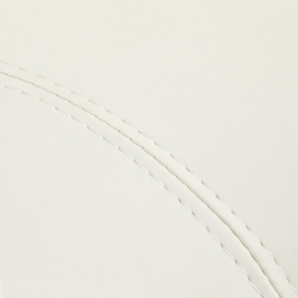 Pięcioramienna, odpowiednio zaprojektowana podstawa sprawia, że taboret jest stabilny, nawet podczas intensywnej pracy. Dodatkowo wyposażony jest w kółka, co ułatwia jego przemieszczanie. Krzesło jest stabilne i wytrzymałe. Obicie wykonano z imitacji skóry w odcieniach bieli, dzięki użyciu takiego materiału jest ono odporne na wilgoć i łatwe w czyszczeniu.