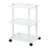 Przyjemne w dotyku, obicie ze skóry syntetycznej w odcieniach bieli nadaje meblowi wyjątkowego charakteru. Eleganckie wykończenie sprawia, że mebel przykuwa wzrok. Stelaż w odcieniach złota dodaje elegancji, idealnie komponując się z prostymi kształtami. Funkcjonalne kółka zapewniają znaczną mobilność, ułatwiając przestawianie krzesła oraz poruszanie się po salonie w trakcie pracy. Estetyka wykonania, komfort użytkowania oraz ergonomicznie wyprofilowane oparcie sprawiają, że krzesło spełni wymagania nawet najbardziej wymagających użytkowników.
