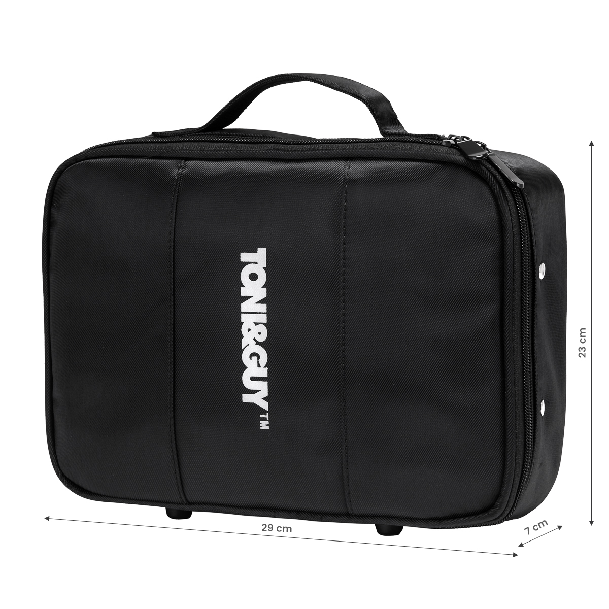 Kuferek jest wyjątkowo pojemny, co zapewnia wystarczającą ilość miejsca na nożyczki, grzebienie, szczotki i inne akcesoria fryzjerskie. Praktyczne elementy zabezpieczające we wnętrzu gwarantują, że narzędzia pozostaną bezpieczne nawet w trakcie transportu. Kuferek Toni&Guy sprawia, że najważniejsze narzędzia są zawsze w zasięgu ręki, a solidny uchwyt ułatwia jego przenoszenie. Zastosowanie wysokiej jakości materiałów zapewnia maksymalną trwałość oraz łatwość czyszczenia.
