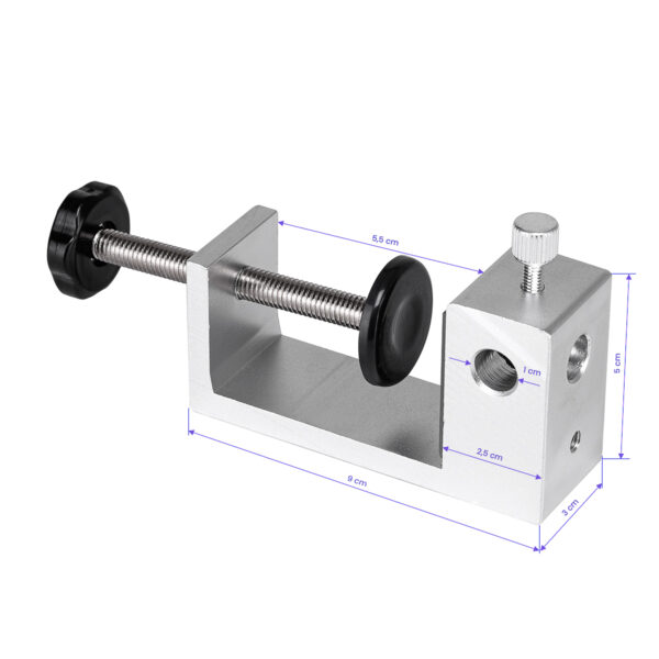 Lampa wyposażona jest w uchwyt działający na zasadzie imadła, który umożliwia szybki i wygodny montaż na blacie. Maksymalne rozwarcie uchwytu wynosi 5,5 cm, co sprawia, że pasuje do większości powierzchni roboczych. Możliwość zamontowania lampy w różnych pozycjach uchwytu zapewnia dużą elastyczność, pozwalając na precyzyjne dopasowanie jej ustawienia. Dzięki temu lampa oferuje szerokie możliwości personalizacji i łatwe dostosowanie oświetlenia do indywidualnych potrzeb.