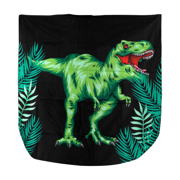 Peleryna wykonana jest z wodoodpornego materiału, który łatwo utrzymać w czystości i który nie przepuszcza wilgoci, chroniąc ubrania przed zamoczeniem. Regulowane, komfortowe zapięcie umożliwia idealne dopasowanie. Wymiary oraz niezwykle proste składanie znacznie ułatwiają przechowywanie. Dodatkowo, nadruk z dinozaurem sprawia, że peleryna staje się nie tylko praktycznym akcesorium, ale także ciekawą atrakcją, umilającą wizytę u fryzjera.
