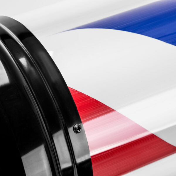 Przykuwający wzrok plafon podświetlany, wyposażony w obrotowy cylinder, stanowi doskonałą reklamę dla barbershopu. Charakterystyczny design, z obracającymi się elementem w kolorach czerwonym, białym i niebieskim, tworzy wyjątkową, międzynarodowo rozumianą wizytówkę salonu fryzjerskiego. Za pomocą pilota na przewodzie można włączać zarówno oświetlenie, jak i obroty plafonu.