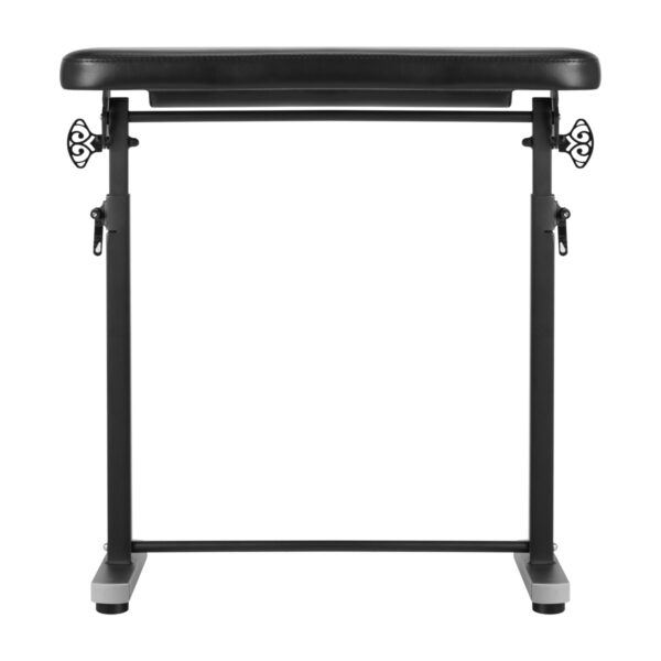 Podłokietnik posiada możliwość regulacji wysokości w granicach 68-111 cm, co pozwala dostosować go do różnych klientów i gwarantuje optymalne podparcie podczas sesji tatuażu. Dzięki funkcji regulacji nachylenia, można dostosować ustawienie podłokietnika do indywidualnych potrzeb klienta, co zapewnia jeszcze większy komfort podczas wykonywania tatuażu.