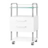 Wysokiej jakości pomocnik podologiczny to funkcjonalny mebel kosmetyczny na kółkach. Dzięki swojej mobilności możesz transportować go do innych pomieszczeń zabiegowych. Pomocnik posiada szklany blat roboczy, trzy szuflady na narzędzia, akcesoria oraz półkę na frezarkę podologiczną lub inne urządzenie.