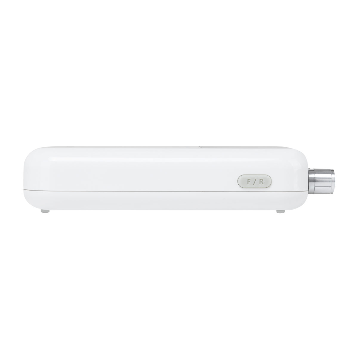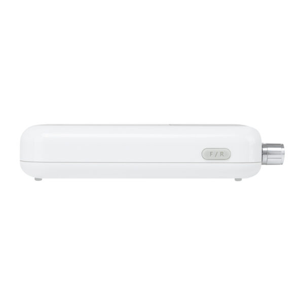 Minimalistyczna obudowa z tworzywa sztucznego w odcieniach bieli łączy trwałość z łatwością w utrzymaniu czystości, a jednocześnie stanowi atrakcyjny element wizualny stanowiska pracy. Kompaktowe wymiary i lekka konstrukcja sprawiają, że frezarka doskonale sprawdza się zarówno na niewielkich stanowiskach pracy, jak i w trakcie transportu – idealna dla osób świadczących usługi mobilne. Gumowane elementy na spodzie zapewniają większą stabilność, zapobiegając przesuwaniu się urządzenia podczas pracy, co przekłada się na bezpieczną i komfortową obsługę.