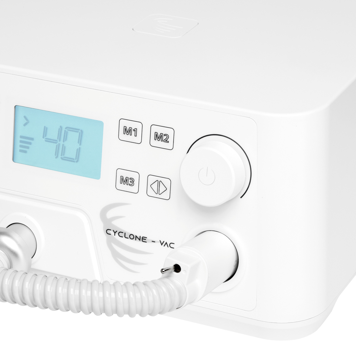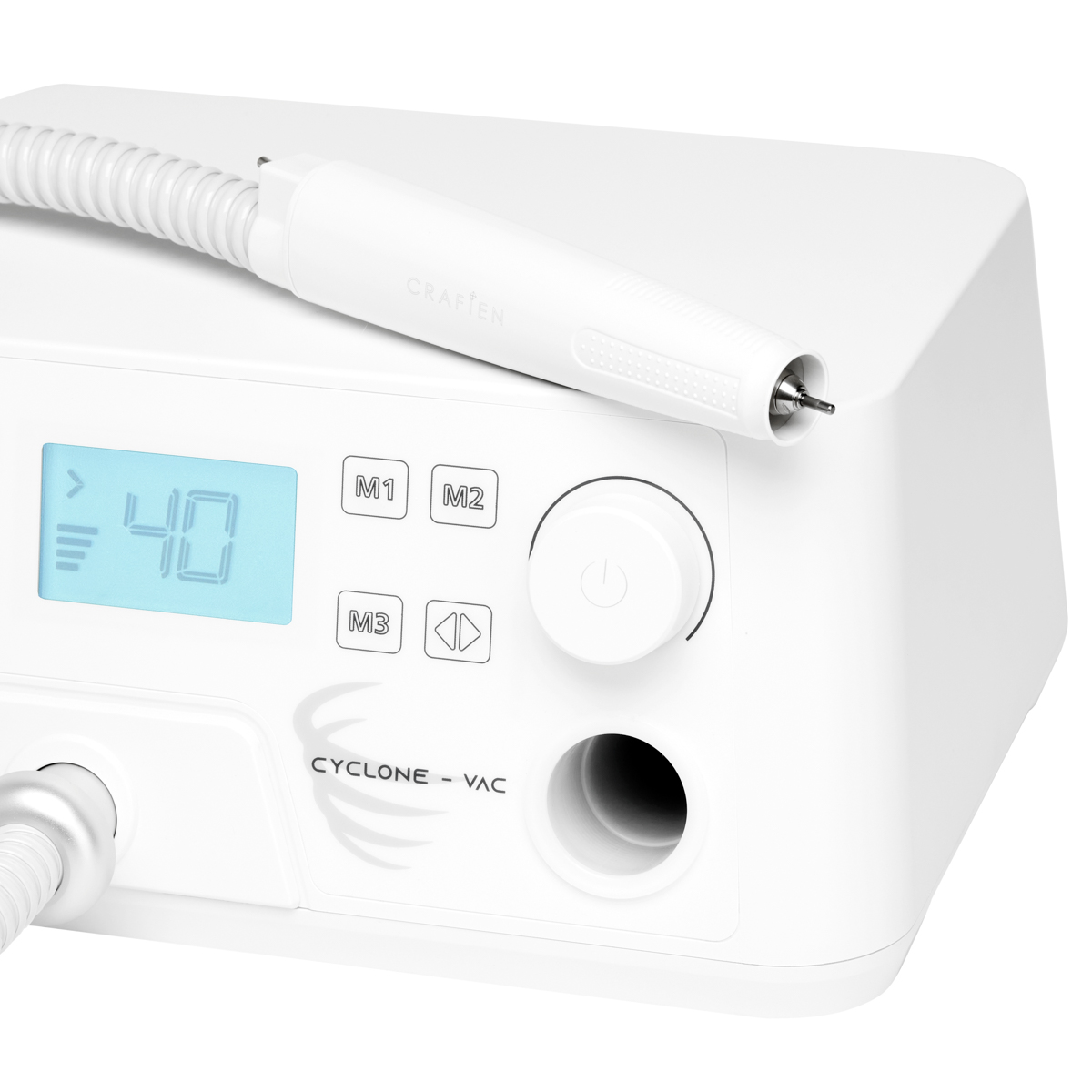 Wysokiej klasy frezarka podologiczna z pochłaniaczem Saeyang Marathon Cyclone-Vac to specjalistyczne urządzenie, które pozwala zachować wysokie standardy higieniczne w gabinecie, efektywnie chroniąc zdrowie osób wykonujących usługi oraz klientów. Profesjonalna frezarka przeznaczona jest do pedicure, zwłaszcza zabiegów leczniczych na sucho przeprowadzanych w podologii, ale sprawdzi się również w trakcie manicure. Wydajna głowica z pochłaniaczem oraz intuicyjna obsługa znacząco usprawniają pracę podologa, ułatwiając wykonywanie szerokiej gamy zabiegów.