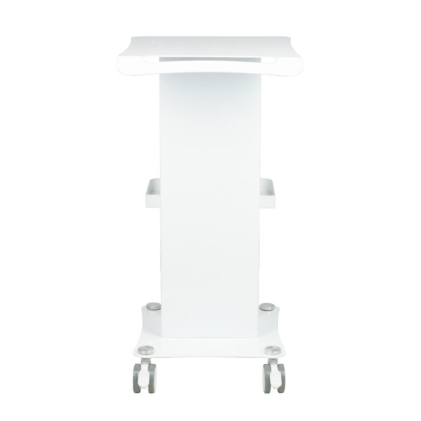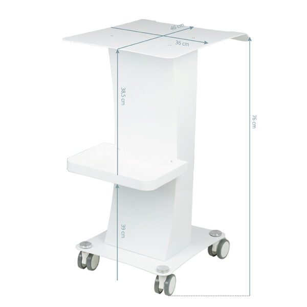 Funkcjonalny, metalowy stolik z gumowymi kółkami z funkcją blokady. Iidealnie sprawdza się jako stolik pod urządzenie kosmetyczne. Posiada stabilną półkę na urządzenie oraz drugą na akcesoria a dzięki kółką stolik jest mobilny i łatwy do przesuwania. Mebel zapewnia wygodę i komfort podczas pracy.