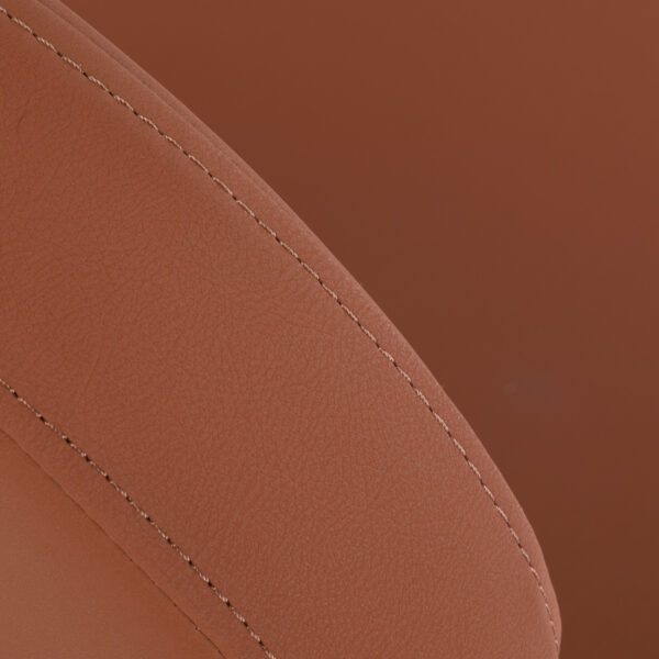 Taboret osadzono na pięcioramiennej, czarnej podstawie z półmatowym wykończeniem, co zapewnia doskonałą stabilność nawet przy intensywnym użytkowaniu. Siedzisko obito wytrzymałą skórą syntetyczną w odcieniach eleganckiego brązu, odporną na wilgoć, zabrudzenia i codzienną eksploatację, a piankowe wypełnienie utrzymuje swój kształt nawet przy długotrwałym obciążeniu. Nowoczesny, estetyczny wygląd sprawia, że taboret doskonale wpisuje się w profesjonalne wnętrza. To praktyczny i elegancki wybór dla salonów fryzjerskich, kosmetycznych i gabinetów, w których istotne są komfort pracy, solidność wykonania oraz stylowe wyposażenie.