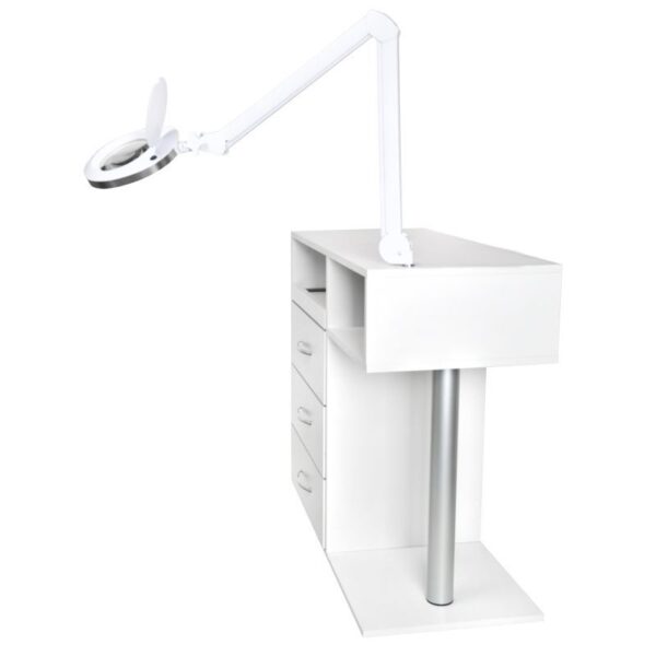 Bezcieniowa lampa lupa Elegante umożliwia oglądanie skóry w powiększeniu 5D, jednocześnie zapewniając doskonałe oświetlenie. Szło antyrefleksyjne gwarantuje większy komfort w trakcie pracy, zmniejszając ryzyko wystąpienia bólu głowy podczas wykonywanych usług. Chłodna barwa światła wzmaga koncentrację. Regulowany statyw pozwala ustawić odpowiednią wysokość oraz kąty nachylenia, dzięki czemu łatwo dostosować oświetlenie do indywidualnych potrzeb. Lampa lupa idealnie sprawdzi się do precyzyjnych diagnoz i zabiegów na tkance skórnej, znacząco ułatwiając pracę podologa.
